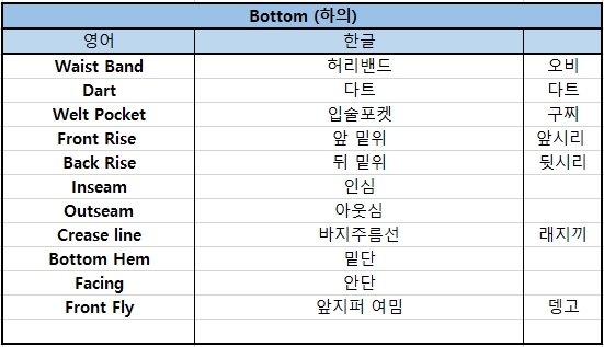[패션 실무용어] 바지 부위별 용어 (한/영)Fashion 실무 2023. 6. 15. 07:58